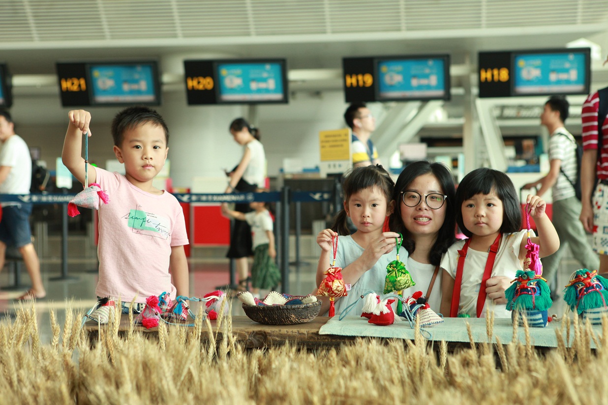 6月15日,“邂逅·浙江非遺藝術(shù)”之“邂逅浪漫空港,遇見非遺端午”活動(dòng)在T3航站樓出發(fā)層舉行。在雅致的現(xiàn)場古琴演奏下,旅客們穿梭在翻滾涌動(dòng)的金色麥浪中,休憩在蒲團(tuán)上觀看非遺文化紀(jì)錄片,欣賞粽子、香囊等別致的端午文創(chuàng)作品。