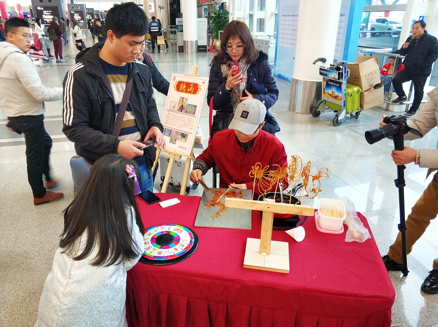 2020年春運(yùn)如火如荼展開,杭州蕭山國際機(jī)場“幸福起航”春運(yùn)品牌活動(dòng)成為了今年航站樓春運(yùn)的文化新亮點(diǎn)。1月10日至18日期間,紅墻祈福、福鼠合影、互動(dòng)抽獎(jiǎng)、書法家贈(zèng)福、非遺民俗等活動(dòng)輪番上陣,航站樓內(nèi)年味十足,吸引了大批旅客駐足參與。為進(jìn)一步弘揚(yáng)地域傳統(tǒng)文化,活動(dòng)現(xiàn)場更有四項(xiàng)傳統(tǒng)手藝傳承人驚喜現(xiàn)身,展現(xiàn)扎染、剪紙、制作糖人和皮影戲四項(xiàng)民俗技藝,讓旅客親手制作一份傳統(tǒng)民俗小禮,帶著溫暖和祝?;丶?。