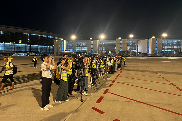 中新社、中國民航報、浙江日報、浙江衛(wèi)視、杭州日報、杭州電視臺等30余家媒體受邀現(xiàn)場報道。(施東杰 丁夢 文 譚申捷 攝)