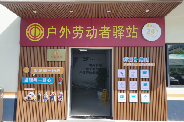 目前,杭州機(jī)場(chǎng)出租車日均流量超3000輛次,司機(jī)排隊(duì)等客時(shí)間超3小時(shí);網(wǎng)約車日均流量約超11000輛次,排隊(duì)等客時(shí)間約為30分鐘至1小時(shí)。為切實(shí)改善司機(jī)休息環(huán)境,杭州機(jī)場(chǎng)場(chǎng)區(qū)中心在各級(jí)工會(huì)的支持下,在出租車和網(wǎng)約車蓄車區(qū)建設(shè)24小時(shí)戶外勞動(dòng)者驛站。驛站總面積360㎡,其中出租車蓄車區(qū)驛站面積174㎡,網(wǎng)約車蓄車區(qū)驛站面積186㎡,站內(nèi)均規(guī)劃了休息區(qū)、就餐區(qū)、閱讀區(qū),配置了微波爐、飲水機(jī)、冰箱、空調(diào)、血壓儀、醫(yī)藥箱、書報(bào)架等設(shè)施,讓蓄車區(qū)的司機(jī)、保安和保潔在高溫酷暑下感受到家的溫馨與舒適。