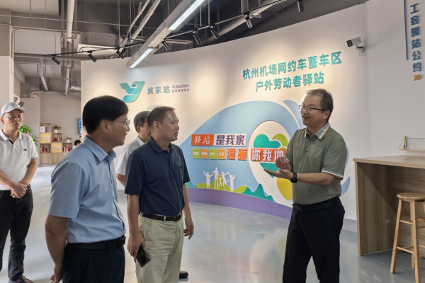 7月22日,杭州機(jī)場(chǎng)工會(huì)出租車、網(wǎng)約車蓄車區(qū)戶外勞動(dòng)者驛站正式啟用。省總工會(huì)副主席施科,省總工會(huì)常委、省部屬企事業(yè)工會(huì)主席葉龍茂一行調(diào)研驛站建設(shè)情況,并開(kāi)展高溫慰問(wèn)。集團(tuán)黨委委員、工會(huì)主席鄭智銀,杭州機(jī)場(chǎng)黨委副書記、工會(huì)主席邵勇敏陪同調(diào)研。