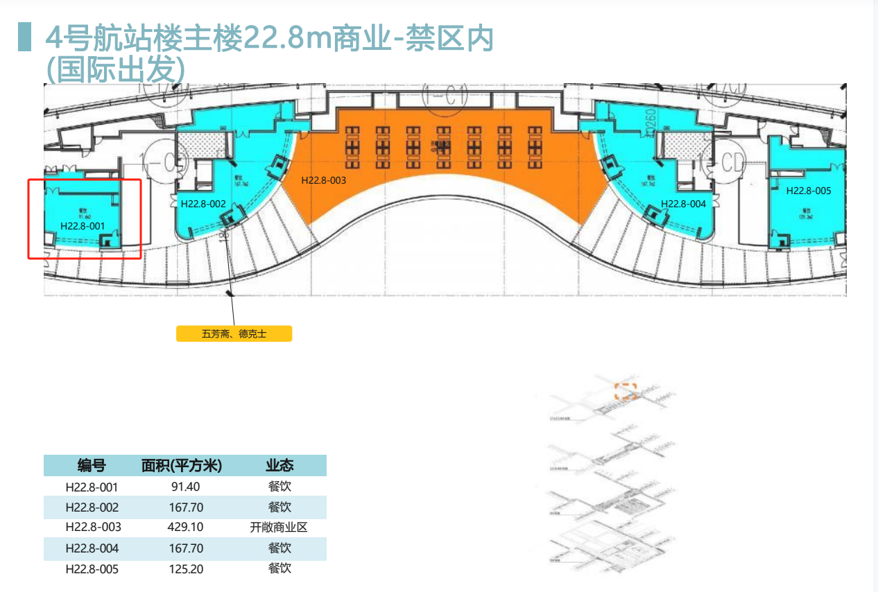 4號(hào)航站樓主樓國(guó)際出發(fā)夾層(禁區(qū)內(nèi))H22.8-001商業(yè)點(diǎn)位